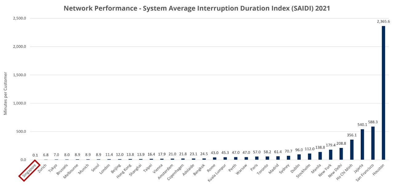Singapore's power system is one of the most reliable in the world. According to a benchmarking study by SP Power Assets (SPPA) and The Lantau Group, Singapore has an average interruption time of less than 1 minute per customer a year.